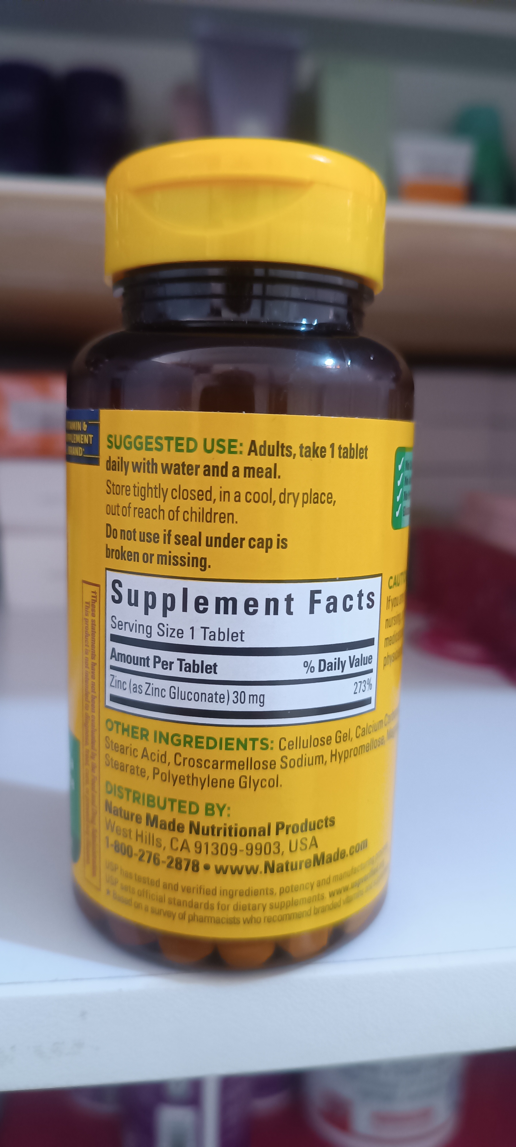 قرص زینک ۳۰ میلی گرم نیچرمید ۱۰۰ عددی